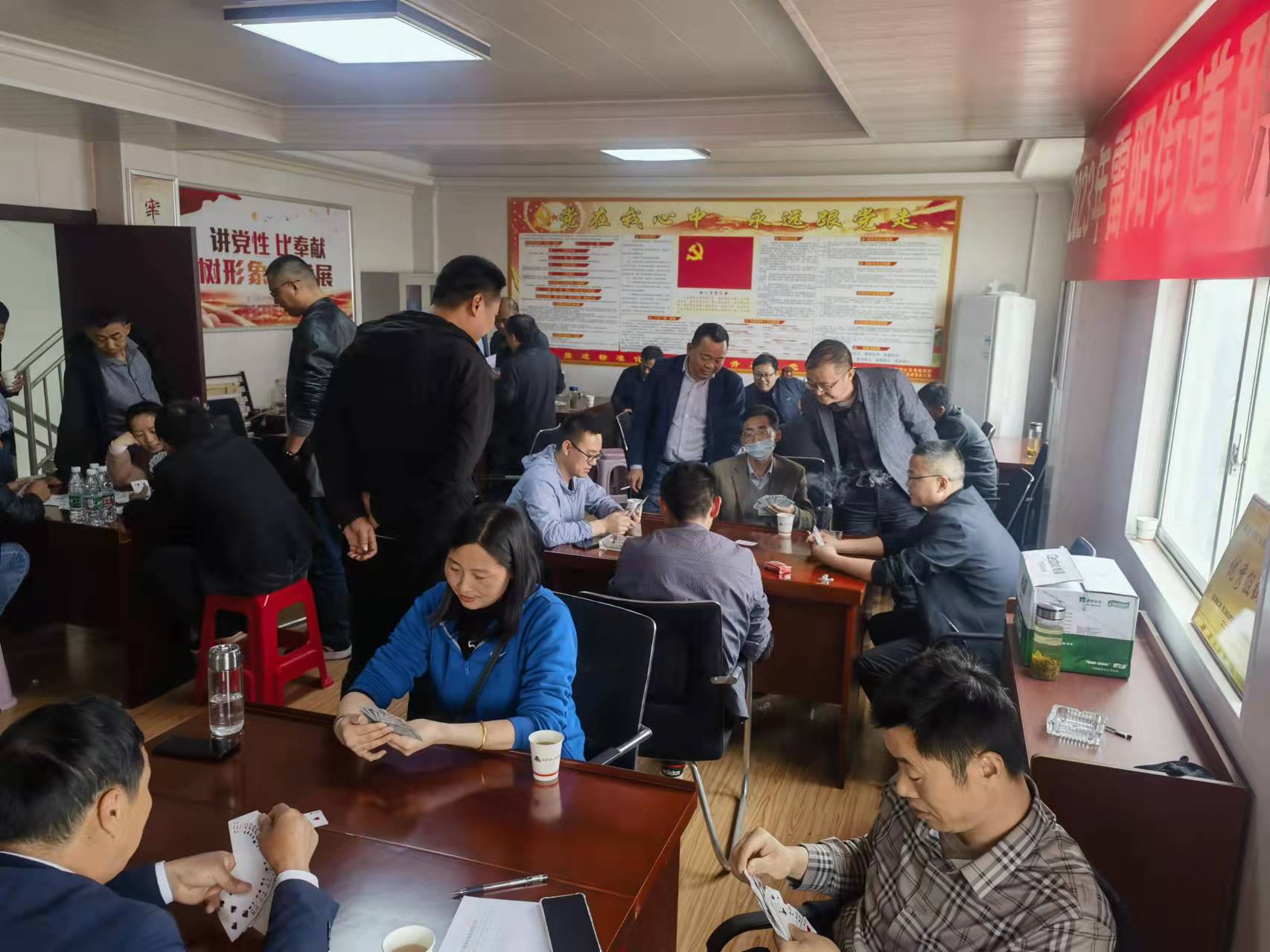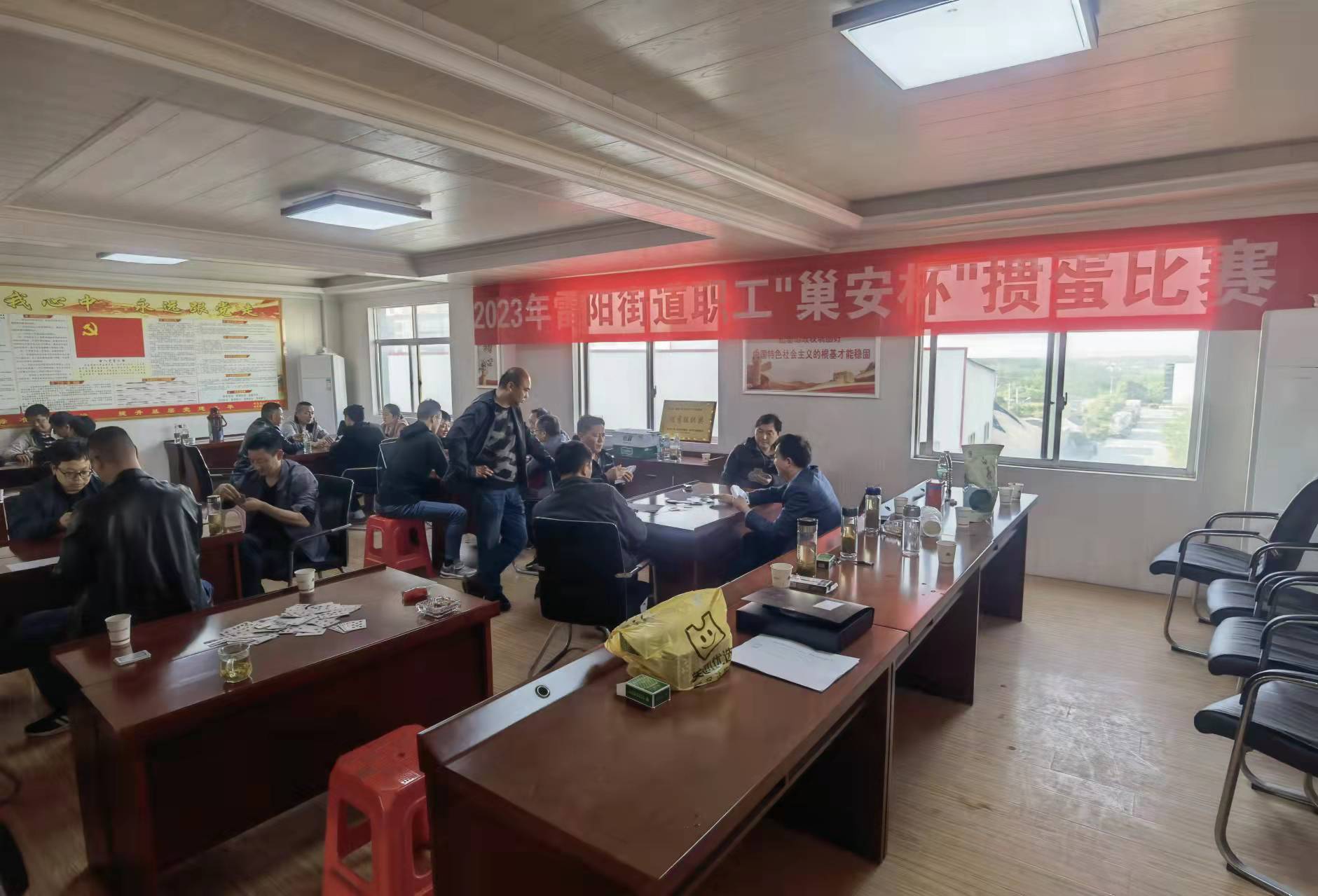 于五一劳动节前夕,雷阳街道联合安庆市91视频下载污水泥有限公司开展了一次别开生面的掼蛋比赛。